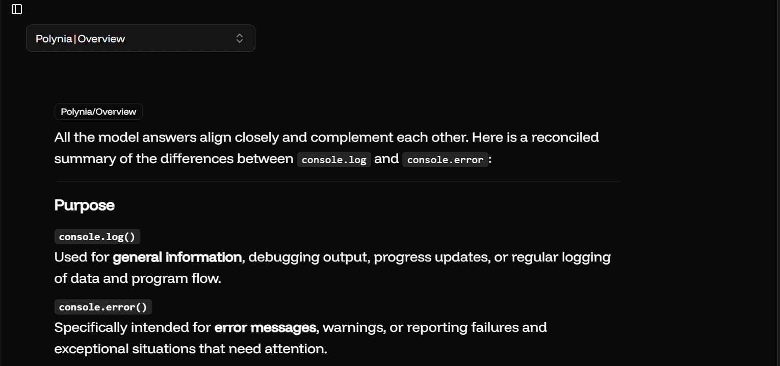 Polynia enables you to access all major AI models with just one prompt. On top of that, Polynia will fact-check, summarise the AI responses.